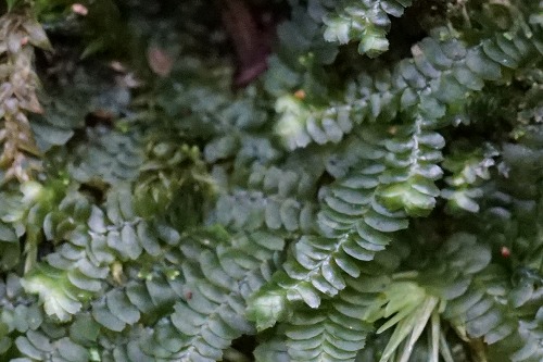 | 形状・サイズ | 腹葉は透明。植物体はやや褐色をおび、長さ10~50㎜と小さい。 葉は重なり合って、扁平に密につく。 |