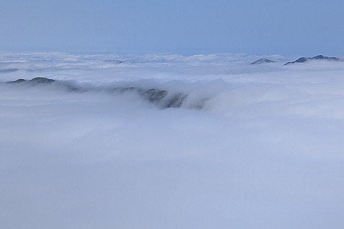 塔の丸の尾根が雲海から少し出て滝雲発生。 |