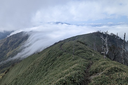 次郎笈縦走路分岐上から丸笹山方面の雲海 |