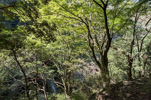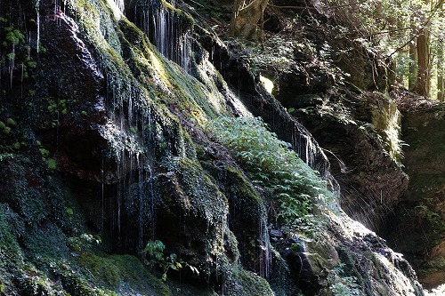 玉簾、周囲の木が減り明るくなって苔の上に草が生えだした。 |